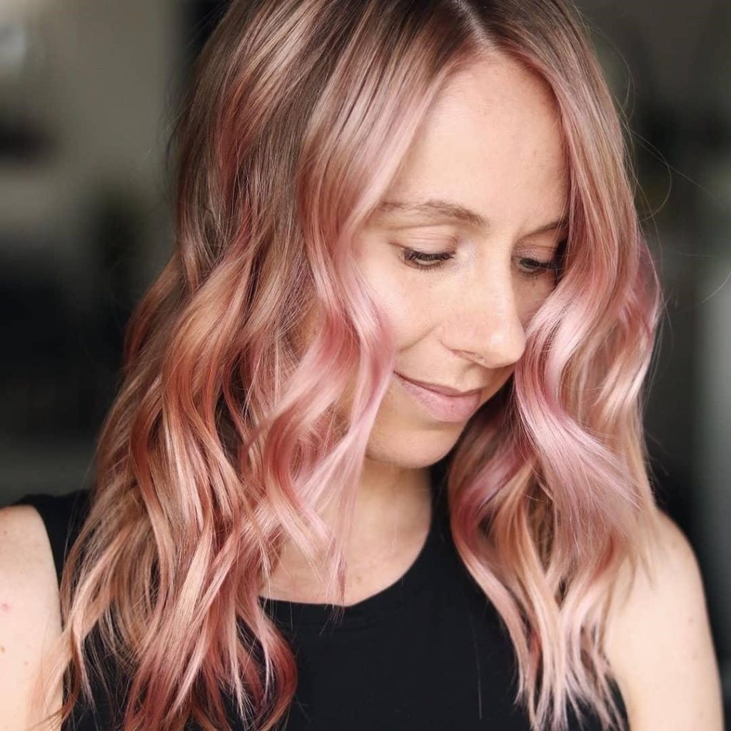 Cotton Candy Balayage Over Strawberry Blonde Waves