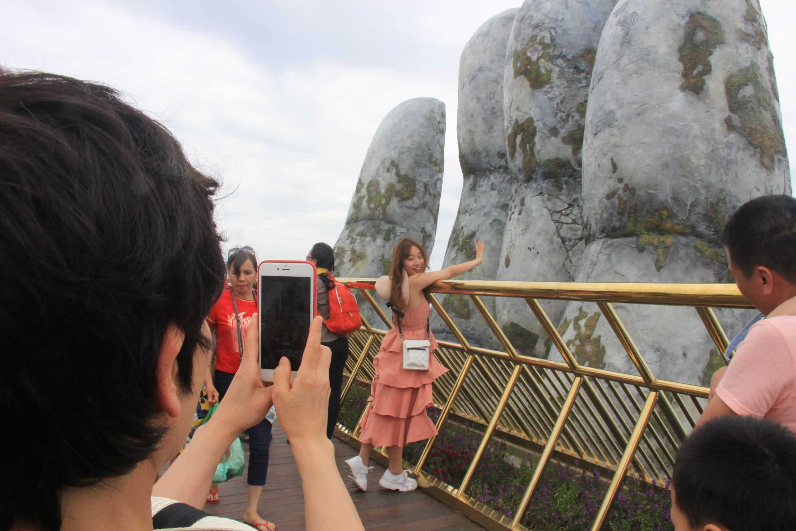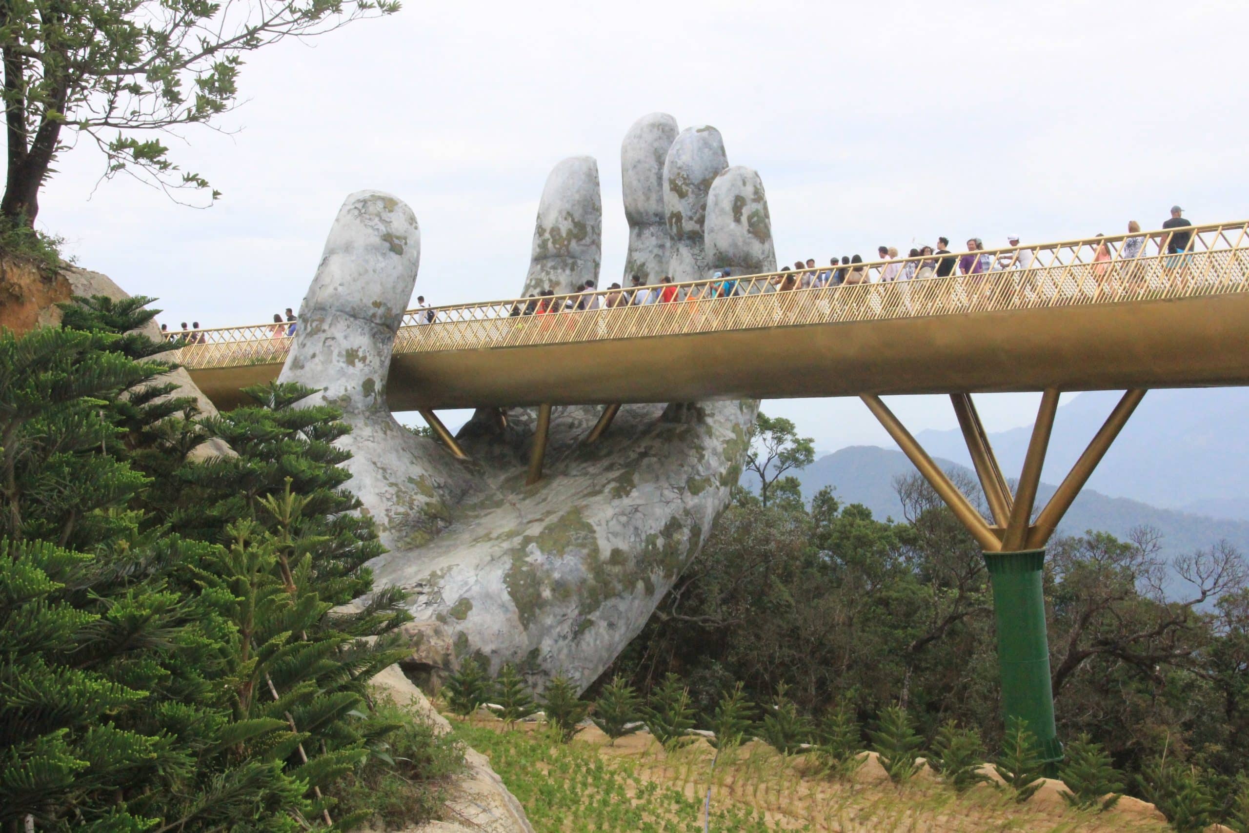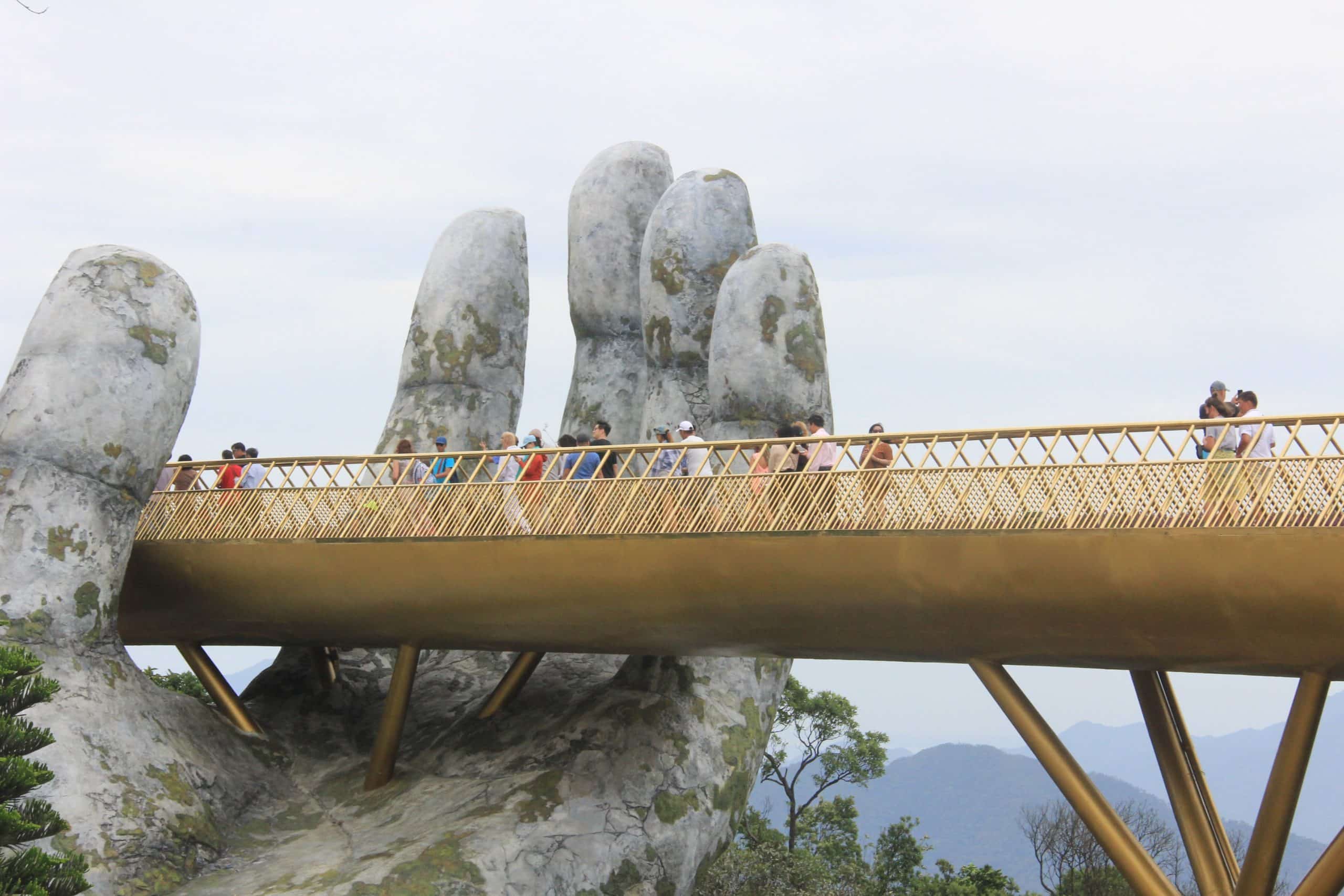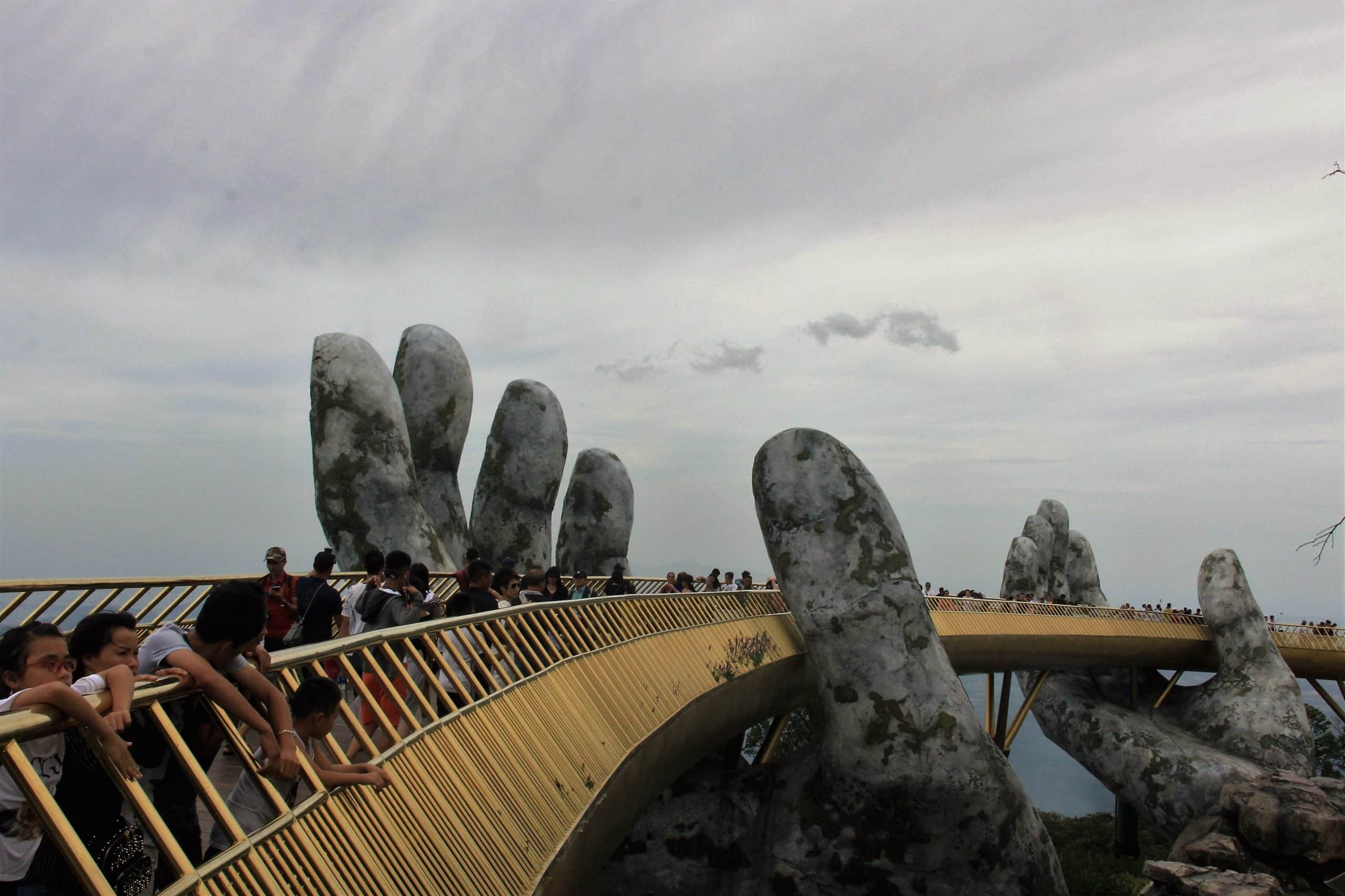 The hands supporting the gold bridge, to keep the sky in Da Nang – Vietnam
